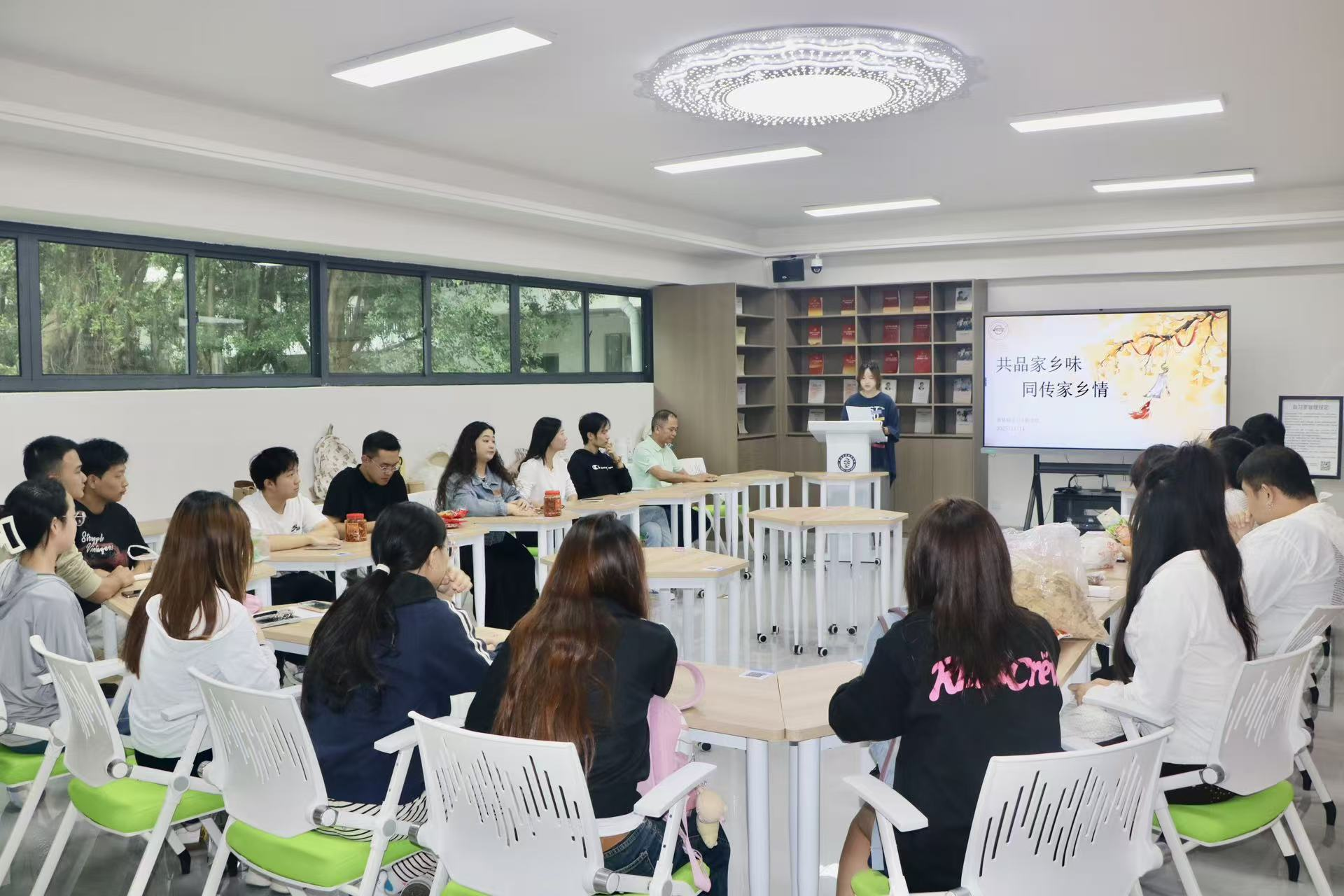美食分享环节亮点纷呈,同学们依次登台,在三分钟内生动介绍家乡美食的产地、工艺及背后的文化故事与成长记忆。分享结束后,所有参与活动人员共同前往美食展示区,各类美食琳琅满目,大家共同驻足品尝、亲切交流,在舌尖滋味与欢声笑语中拉近彼此距离,为异乡求学时光增添了温暖的烟火气。