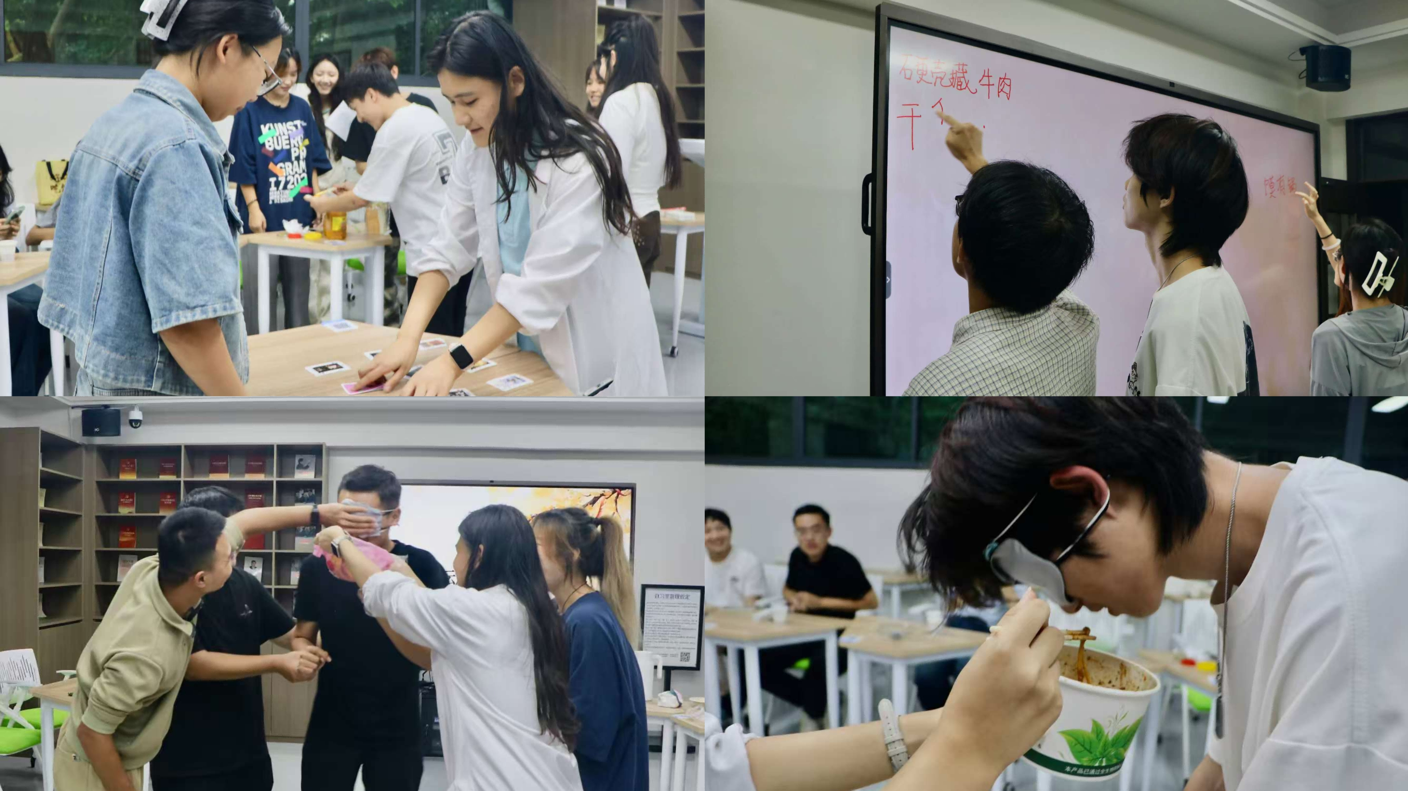 游戏互动环节趣味拉满,“记忆纸牌”“蒙眼寻觅”“最佳拍档”等精彩游戏轮番登场,同学们踊跃参与、全力角逐,现场氛围热烈非凡。获胜者喜提精美礼品,满载喜悦而归;趣味惩罚与创意搭配环节紧随其后,新奇玩法接连上演,瞬间引爆全场笑点,欢声笑语在活动现场久久回荡。