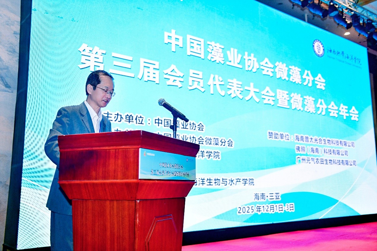 12月1日-3日,中国藻业协会微藻分会第三届会员代表大会暨微藻分会年会在海南三亚隆重召开。本次会议由中国藻业协会主办、微藻分会和海南热带海洋学院共同承办。本次会议汇聚了国内微藻领域科研院所专家、行业龙头企业代表、产业链上下游从业者及相关管理部门人员等共计150余人,共同总结“十四五”期间我国微藻产业发展状况及前景,为“十五五”规划制定建言献策,为我国微藻产业的规范化、规模化、高值化发展凝聚共识、夯实基础。